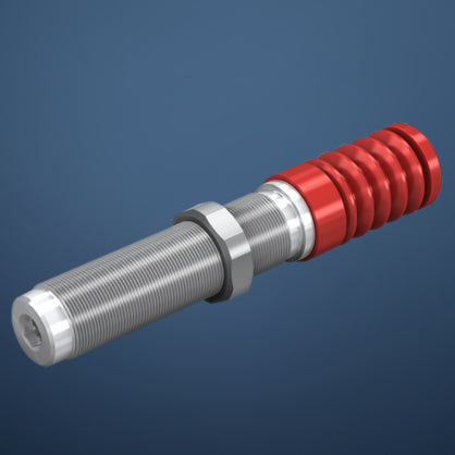 The ACE PMC150EUM-V4A Miniature Shock Absorber combines robust fluid protection with reliable performance in challenging environments. Featuring a compact, hermetically sealed TPU (thermoplastic polyurethane) bellow, this absorber shields its internal ACE rolling diaphragm from aggressive cutting, lubricating, and cleaning agents. With an energy capacity of 20 Nm per cycle and a 12.5 mm stroke, it ensures effective deceleration without the risk of contamination. Designed for durability and maintenance-free operation, the PMC150EUM-V4A is ideal for applications like machining centres and mechanical engineering setups where conventional dampers may wear quickly. The shock absorber can be mounted in any position.